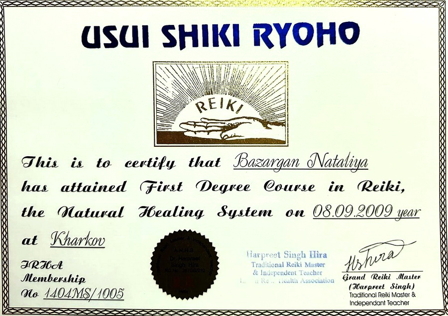 Ich bin Nataliya Bazargan, Praktikerin für Energie- und Wellnessarbeit sowie zertifizierte Usui Reiki Meisterin (2. Grad).